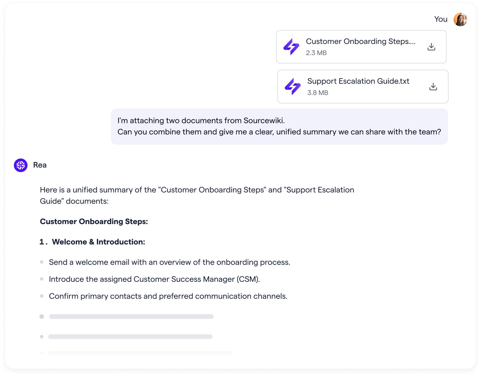 REA uses your Multiplai Source documents to produce clear, reliable outputs your team can use immediately.